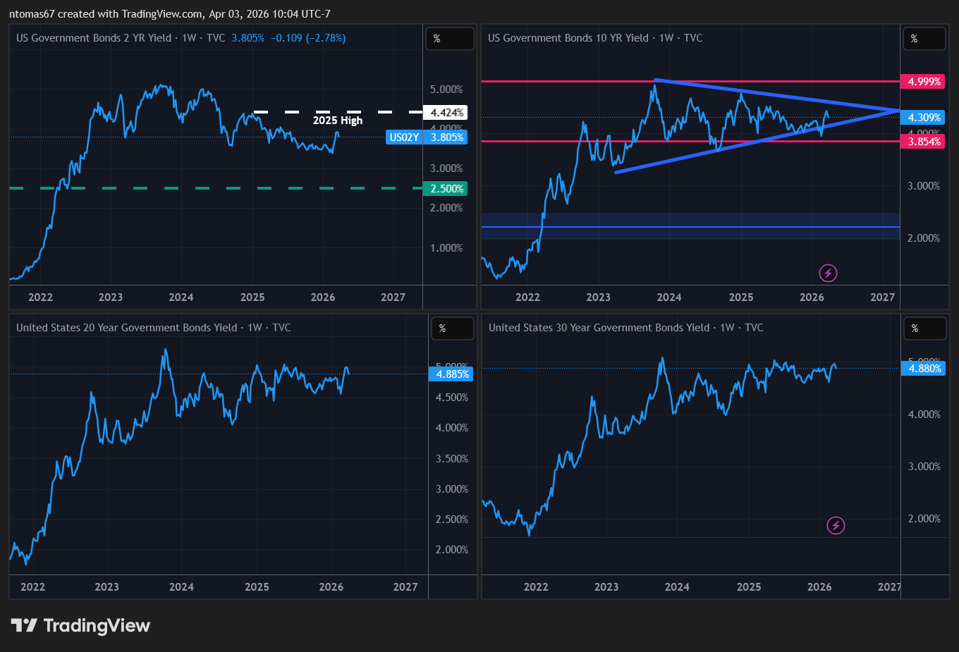2-yr, 10-yr, 20-yr, and 30-yr Bond Yields